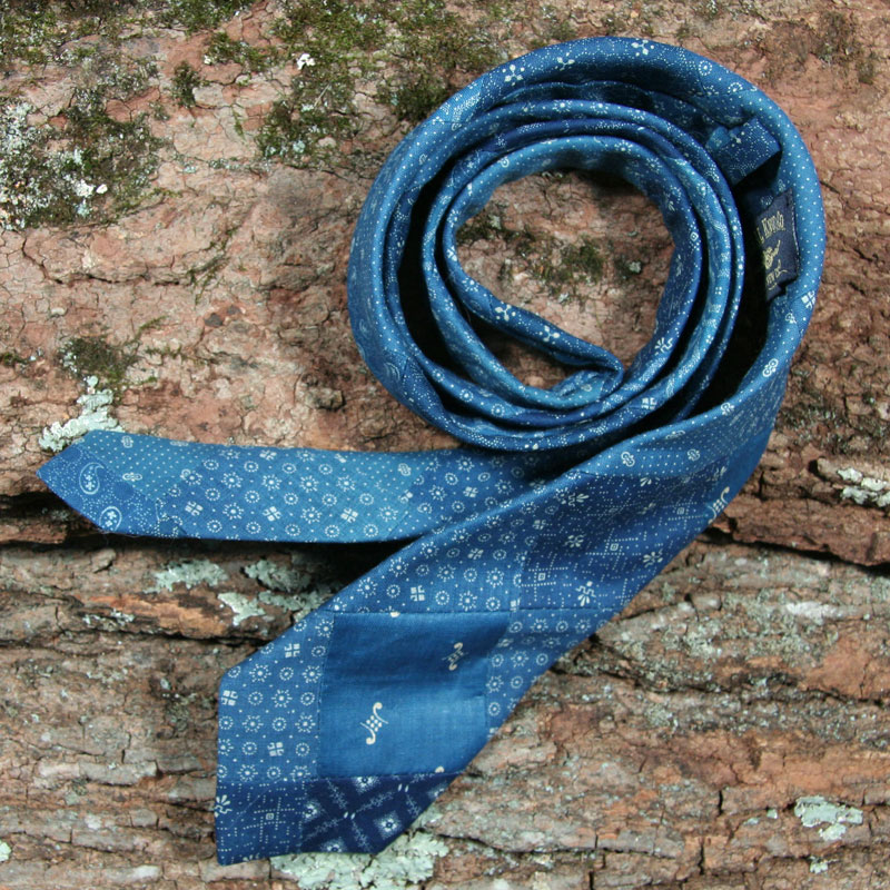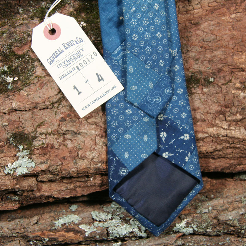 All of the ties measure 2 7/8″ wide and prices range from $88 to $148 for the blue deadstock patchwork tie pictured above (which is one fine looking piece of neckwear). [General Knot & Co.]
