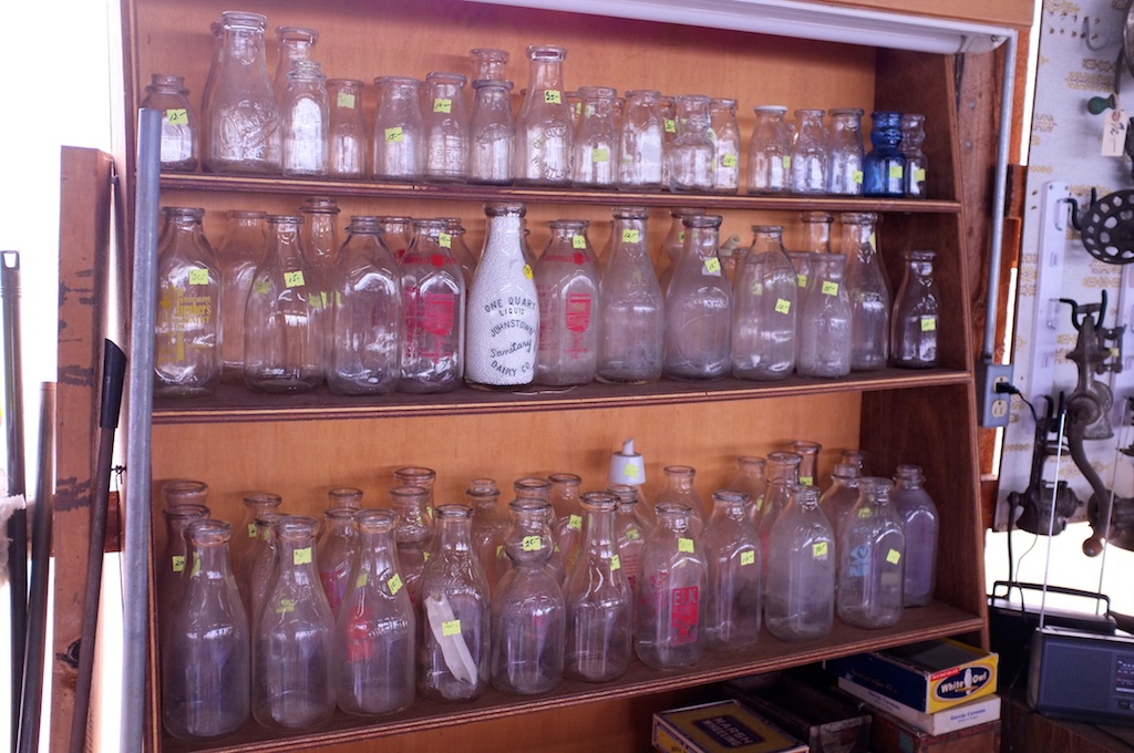 Those old half-pint/pint milk bottles are actually really useful. You can pick them up for $3-7 at nearly any flea market. we use them for serving salad dressing/cream for coffee/simple syrup for ice tea/maple syrup. And our kids each have one so they can pour their own milk into their cereal.