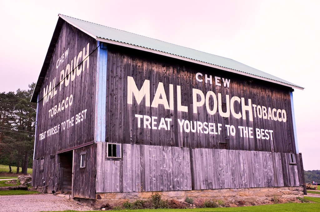 You’ve found the Mail Pouch signs. Drive deeper into the woods, they’re everywhere. My favorites are in Renovo Pa., painted on the side of an old TrueValue hardware store and what once was a men’s clothing store.