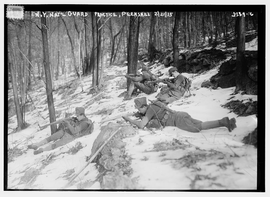 The Library of Congress never ceases to amaze me with its incredible archive of images. While going through a collection of newly digitized photographs, I came across this set from 1915 which documents a winter training maneuver of a New York National Guard unit in the Westchester County town of Peekskill, N.Y. Looking back, one could only assume that these soldiers ended up in Europe a few years later as part of the American Expeditionary Forces in the Great War.