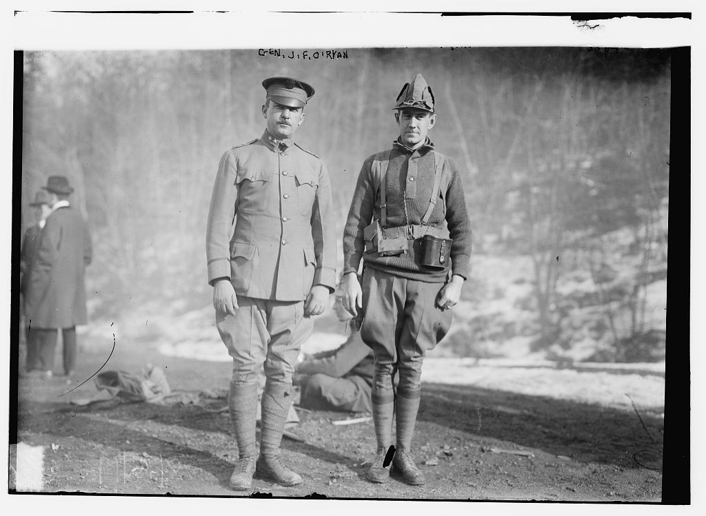 Looks like what later would be called “O’Ryan’s Roughnecks” the 27th NY Division in WWI. Look at those beautiful M1903 Springfield Rifles and those service hats (campaign hats) with the “Montana peak”. I am somewhat surprized at the spiral puttees General O’Ryan and some others are wearing as I thought puttees were only adopted after the American Expeditionary Force landed in Europe in 1916.