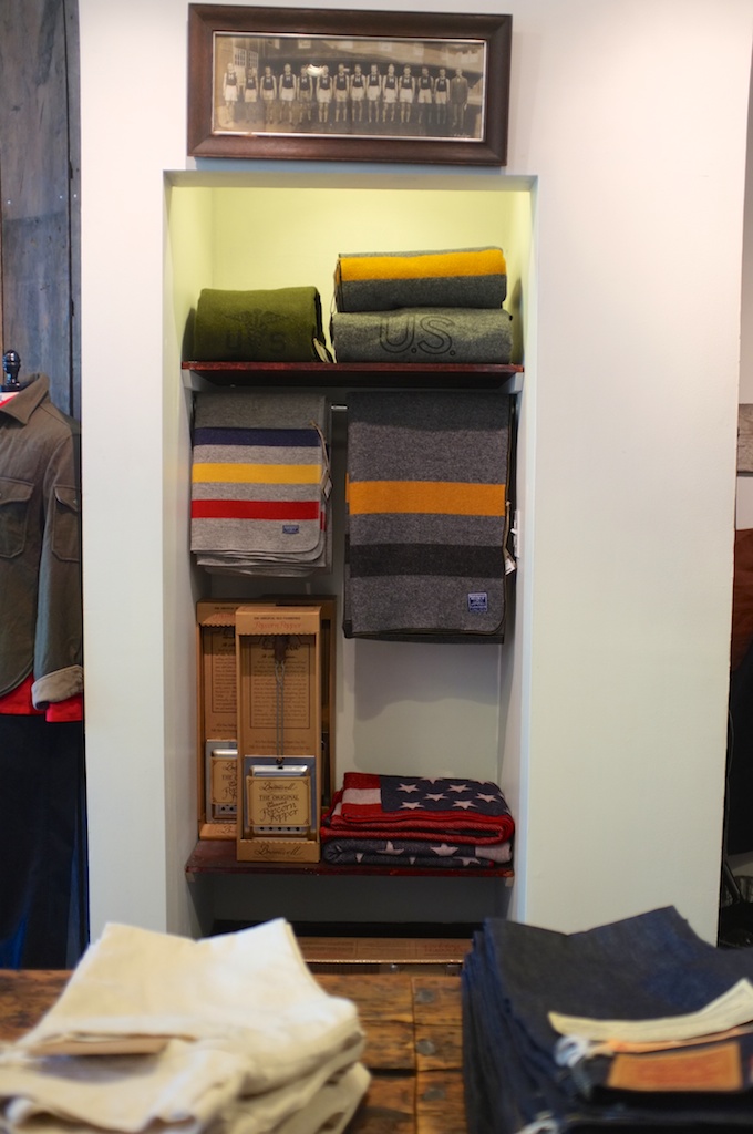 There’s a lot to buy at the shop, but what really stands out to me is the opportunity to try on and take home a very nice selection of footwear from Oak Street Bootmakers. That said, there is all sorts of other good stuff from Batten Sportswear, LVC, Gitman Vintage, Post Overalls and Imogene + Willie. Also present are a bunch of very nice (and well priced) wool blankets from the fairly recently relaunched Faribault Woolen Mills – which are highly likeable things.