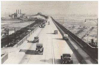 Eventually one day I was bored enough to actually go through with finding out more on this depression era bridge-roadway-thing. What I discovered was likely more than anyone ever needs to know about a single bridge. It turns out a guy named Steven Hart actually wrote an entire book about the Pulaski Skyway called The Last Three Miles, which quickly became required reading for me. The book is pretty interesting for a few hundred pages about a boring bridge in a swamp. It talks in detail about the great difficulty in getting from Newark to Jersey City dating back to the 1700s. Apparently, the whole swamp / horse and buggy thing was murder (Hackensack Plank Road is named such, because it was literally made of planks across the Meadowlands swamps – sounds terrible). Apparently, teams of horses would have to pause in Newark to “blood up” in preparation of the onslaught of mosquitoes that the final push up to Jersey City. Seems shit was pretty intense before the state of New Jersey finally got around to building this thing. The real impetus behind the “Skyway” was the completion of the Holland Tunnel in 1927. Before the 1&9 and the Pulaski Skyway, massive amounts of traffic just dumped out onto the dilapidated Jersey City streets with nowhere to go. Getting from Jersey City to Newark, even in the late 1920s, was a three hour affair.
