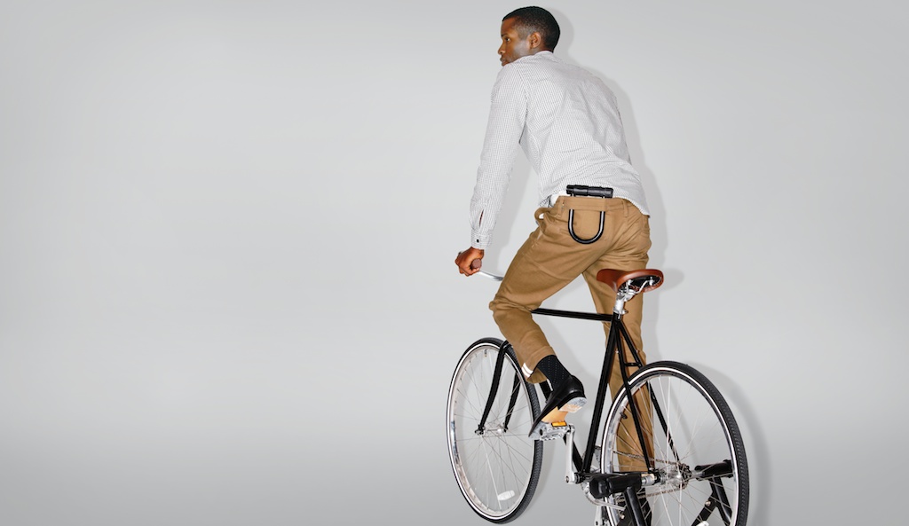 Form and function in one well fit package with no compromises. There’s design innovation built-in with reflective selvage detailing that reveals itself when you cuff your pants – it also helps keep you safe. Obviously safety is paramount. Levi’s also added an extra bit of fabric to hold your lock close to your hip to keep it secure while you roll.