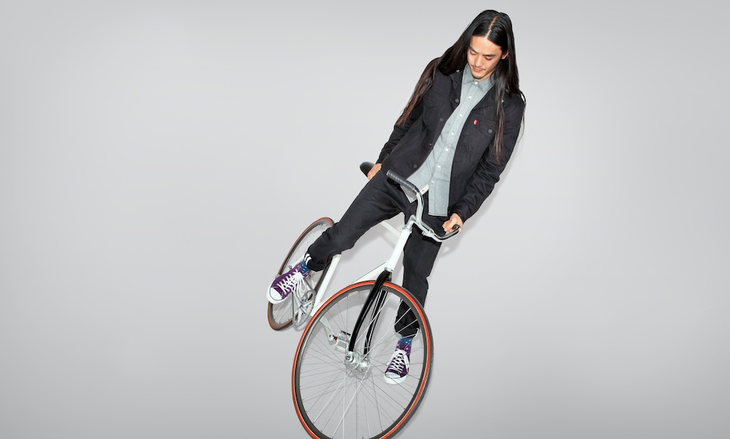 I thought the guy in the top pick was doing a manual on his bike until I realized his left foot wasn’t on the pedal. The jeans look cool, any idea on the price point?