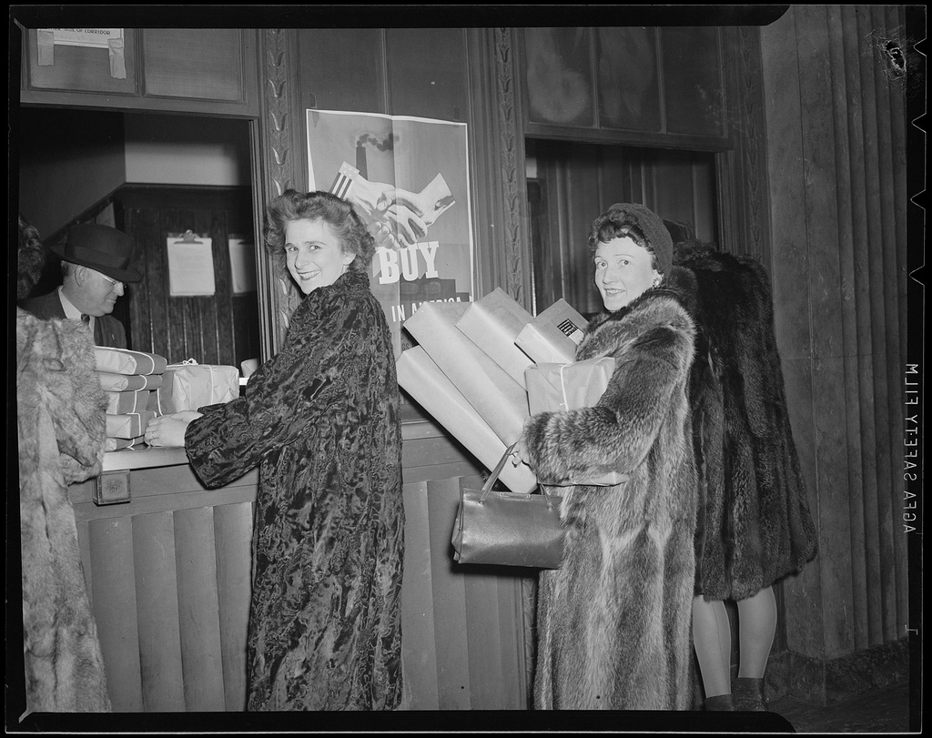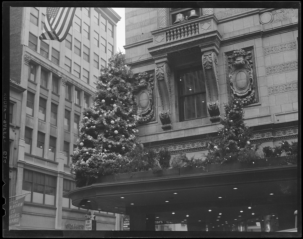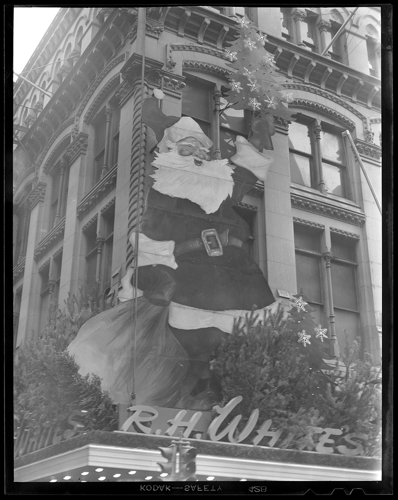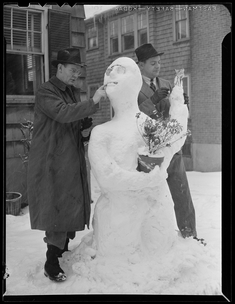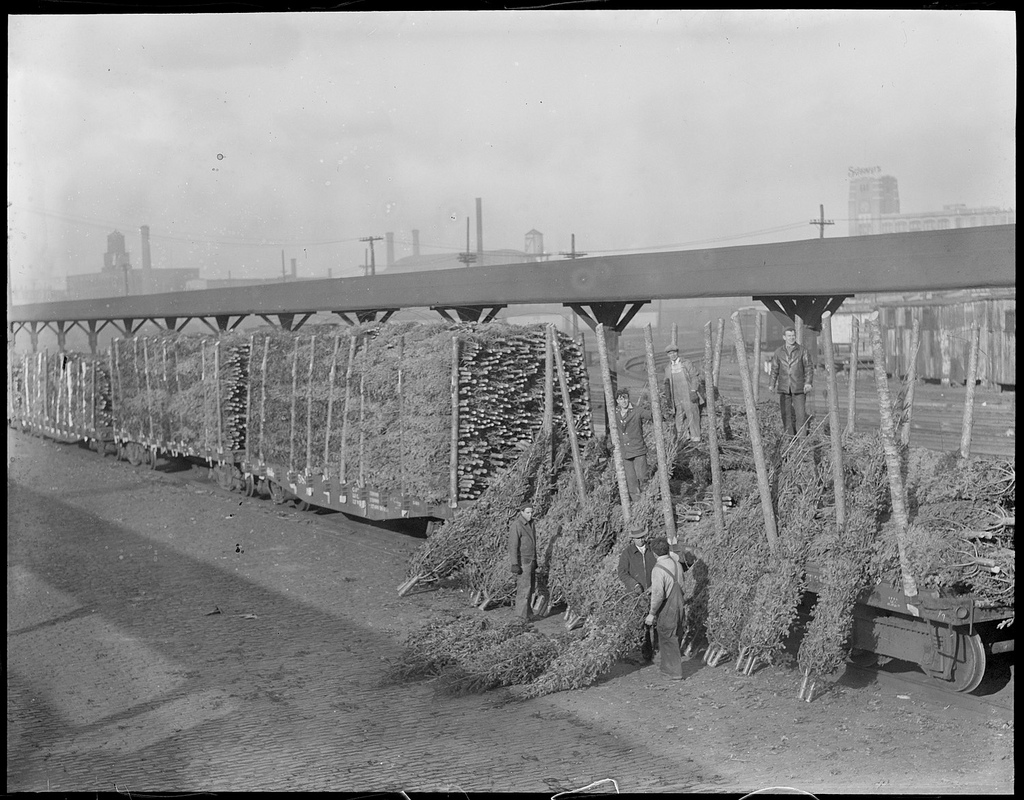 A fitting set of images and sentiments for today. The Boston Public Library has an incredible set of old-time winter scenes shot in and around Boston during the early 20th century. What’s piques my attention in these photographs is the fact that many of the pictured moments are so similar to those of today –from snow filled streets to a towering stack of Christmas trees– though the times are obviously vastly different. To see the packages piled high at the train depot (South Station I believe), the range of photos of people digging out from blankets of snow and the empty nighttime streets after what must have been cold hard days fill me with ideas about what life must have been like way back then.