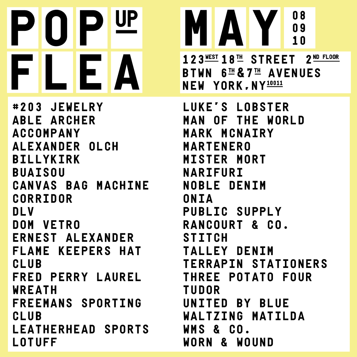 This coming weekend the Pop Up Flea will be open for business in Chelsea with 40 well-made and interesting brands on offer. Join us to shop some great summertime goods from your old favorites and fresh faces. The full vendor list and details are below. Come and #ShopSmall with us Friday, Saturday and Sunday in NYC.